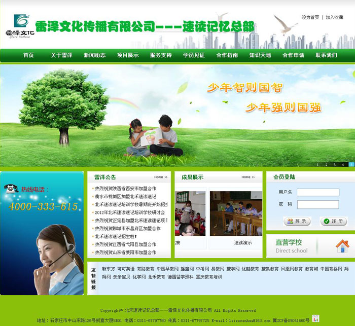 雷澤文化傳播有限公司總部位于河北省省會(huì)——石家莊,是一家專門(mén)從事學(xué)習(xí)方法培訓(xùn)、項(xiàng)目研發(fā)、市場(chǎng)推廣的大型特色教育機(jī)構(gòu),自年成立以來(lái),自主研發(fā)了《北禾速讀速記教學(xué)法》等提升中小學(xué)生特長(zhǎng)能力的系列教程,受到社會(huì)各界的普遍關(guān)注和認(rèn)可。公司始終堅(jiān)持學(xué)生素質(zhì)和能力教育、教學(xué)方法的研究開(kāi)發(fā)、培訓(xùn)推廣及相關(guān)產(chǎn)品的研制經(jīng)營(yíng)工作。是目前國(guó)內(nèi)專業(yè)從事此領(lǐng)域研究與應(yīng)用的教育機(jī)構(gòu)之一。